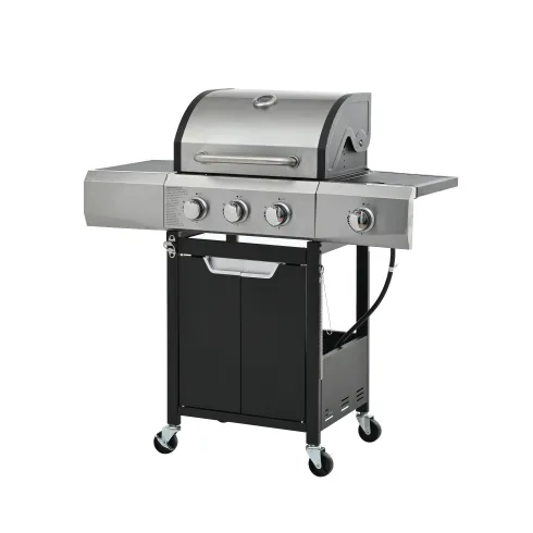 - High-powered Burners: This stainless steel gas grill has 3 main burners (10,500 BTU each) and a side burner (9,000 BTU). 4 burners deliver a total of 40,500 BTU cooking power.