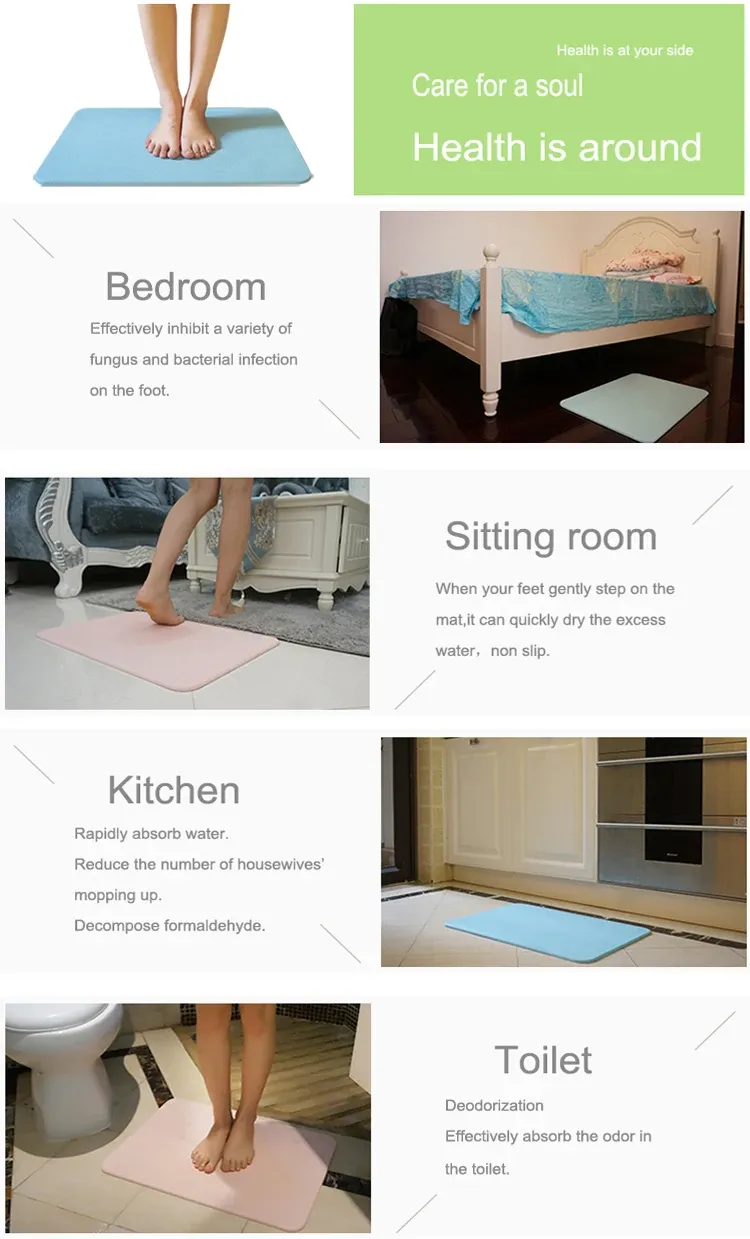 DIATOMITE BATH MAT is made of the diatomaceous earth from Mount Baitou, which has super water absorption, antibacterial deodorization, and