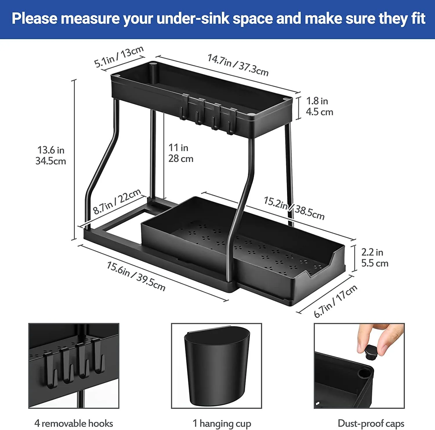 Its sleek and modern design ensures that it complements any home decor, while its two-tier storage system helps keep your space organized and clutter-free. With its ease of installation, durability, and functionality, this rack is a must-have for any household.