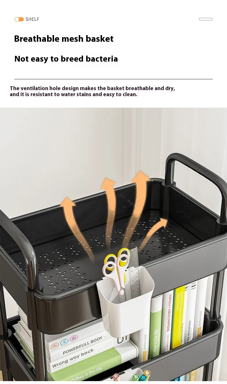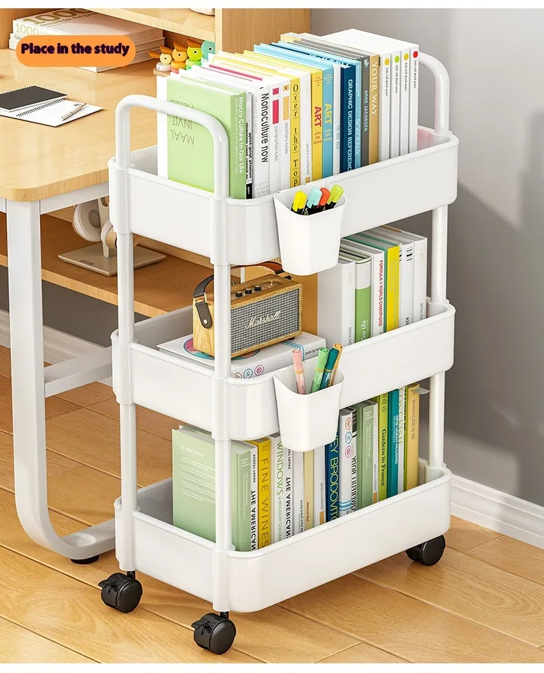 A bathroom trolley is a multi-tiered storage unit typically equipped with wheels for easy mobility. It is designed to store a variety of bathroom essentials such as towels, toiletries, cleaning supplies, or personal care items. These trolleys can be placed anywhere in the bathroom, and their compact design allows them to fit into small spaces, such as between the sink and the wall, or beside the bathtub.