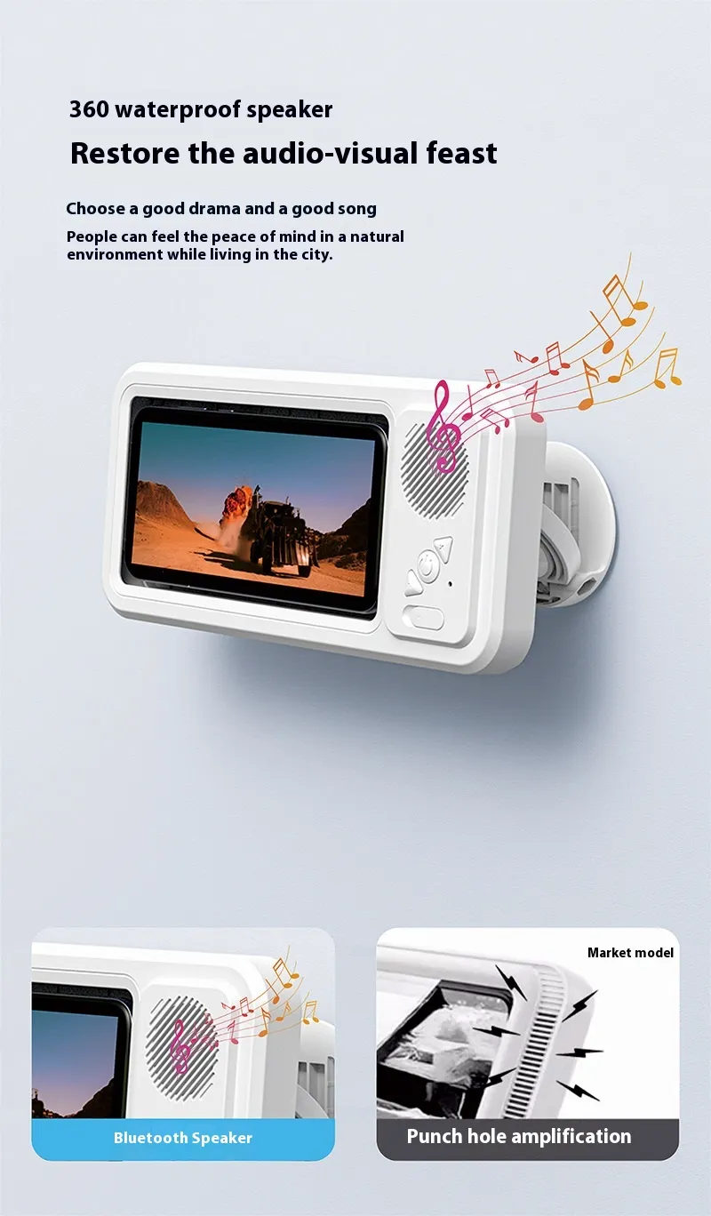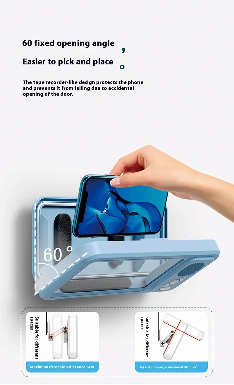 Constructed from durable, high-quality materials, the bracket provides stability and long-lasting protection. Its compact design fits neatly on walls or counters, keeping your phone secure and easily accessible. With clear viewing panels, you can operate your phone or watch videos without exposing it to water.