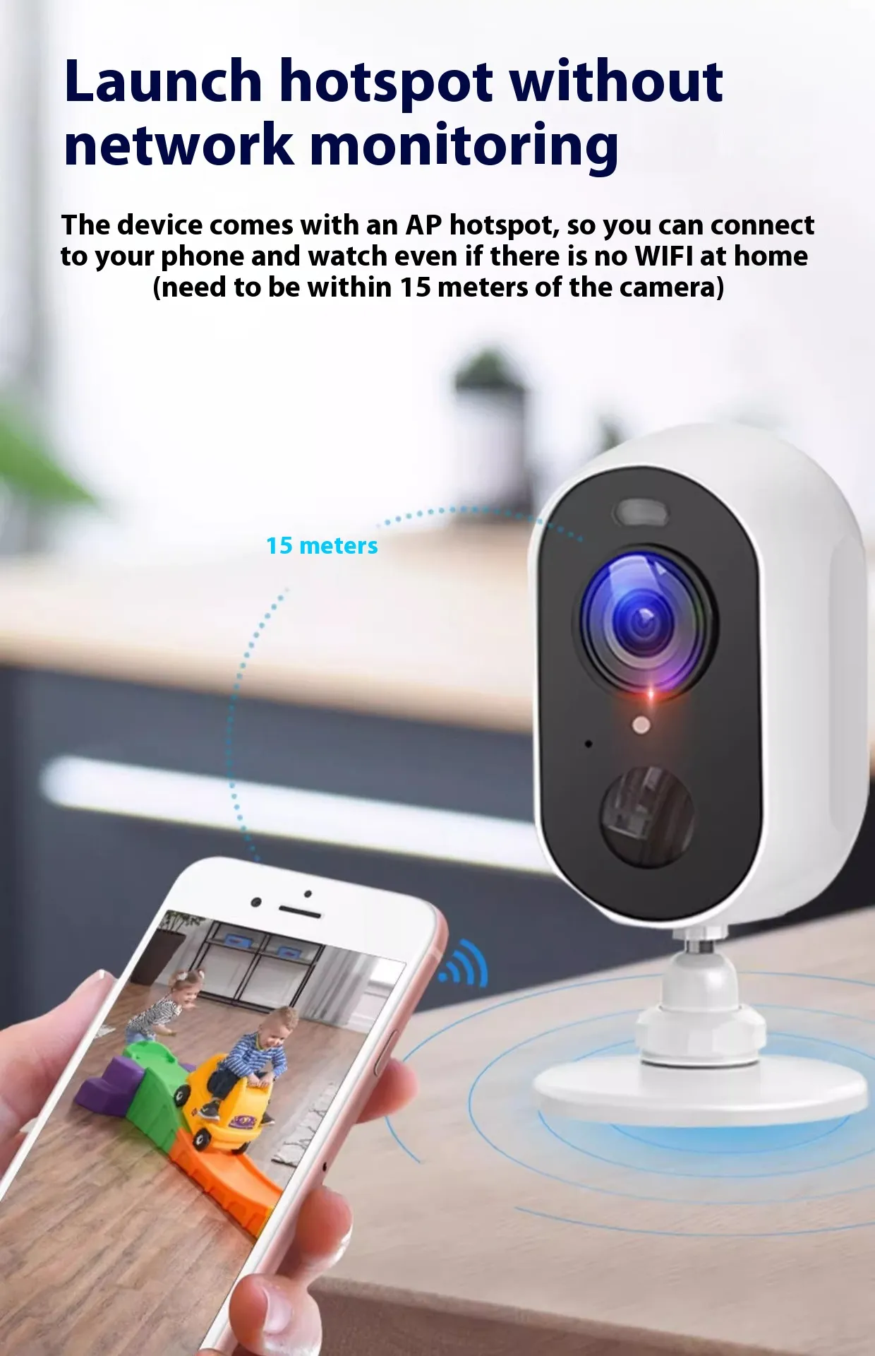 Battery Surveillance Camera – Wireless WiFi Connection with Mobile Phone Remote and Plug-in Punch-free Installation