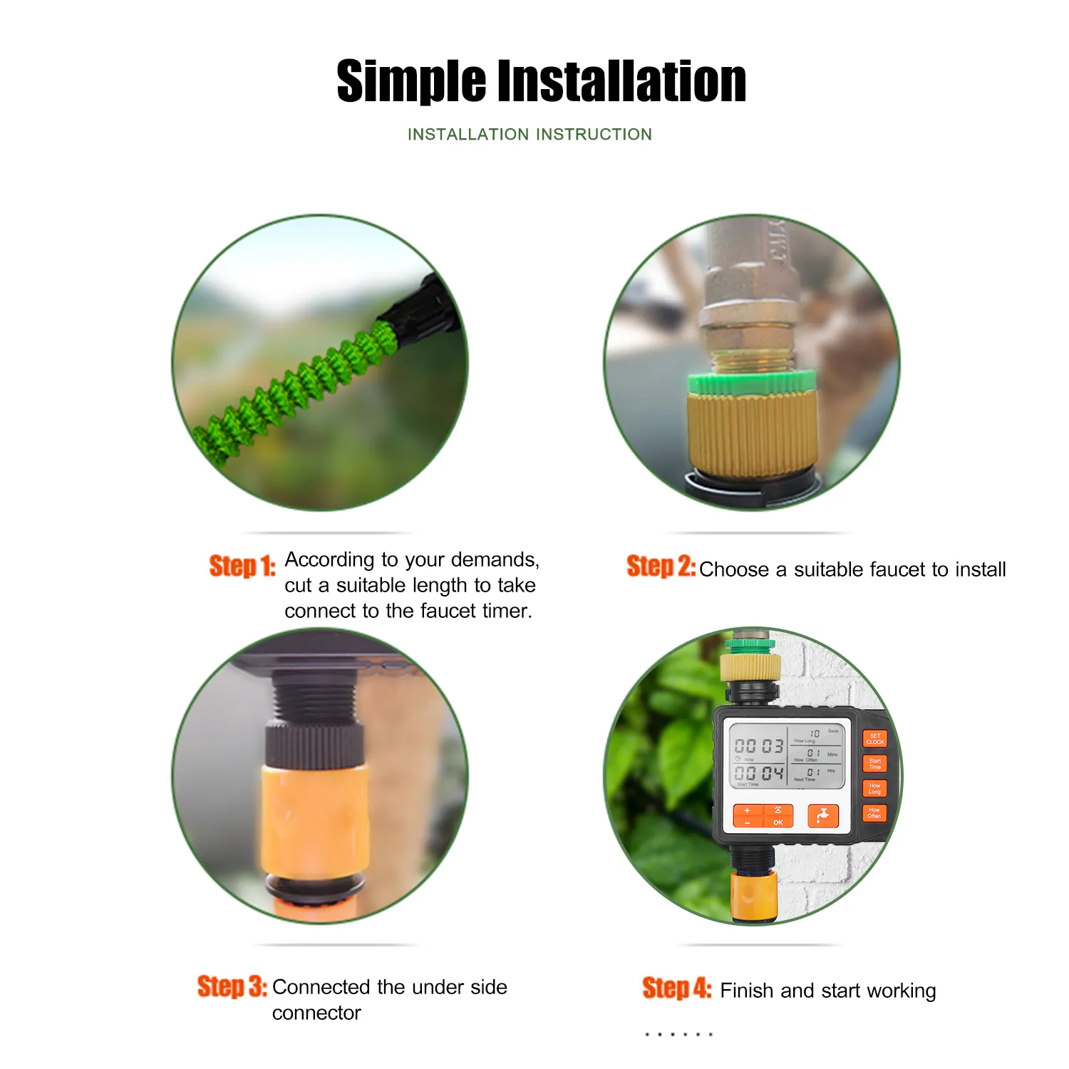 Easy Installation: The Battery Water Timer is simple to install, requiring no complicated wiring. Just