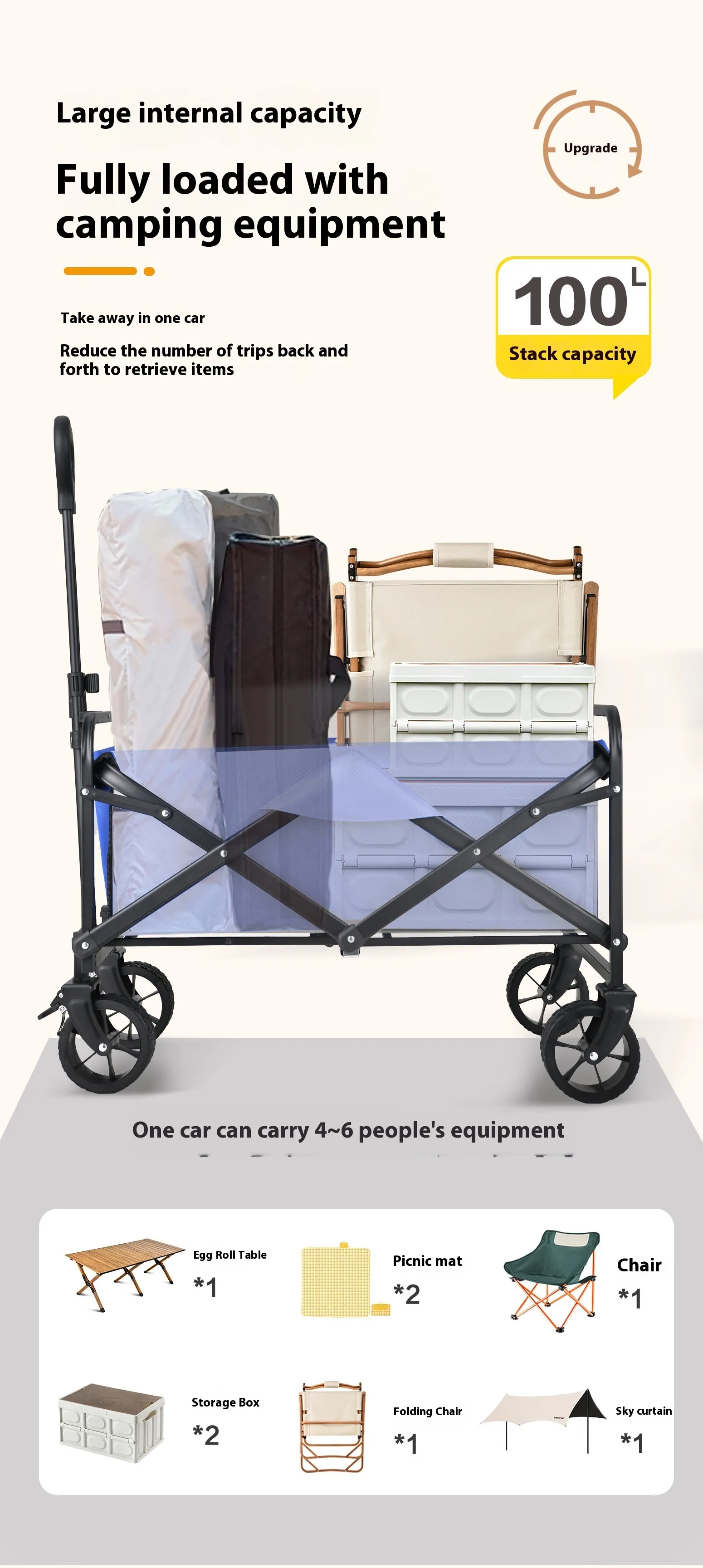 Save Time and Energy: Transport your beach gear in one trip, leaving you with more time to enjoy the sun and less time