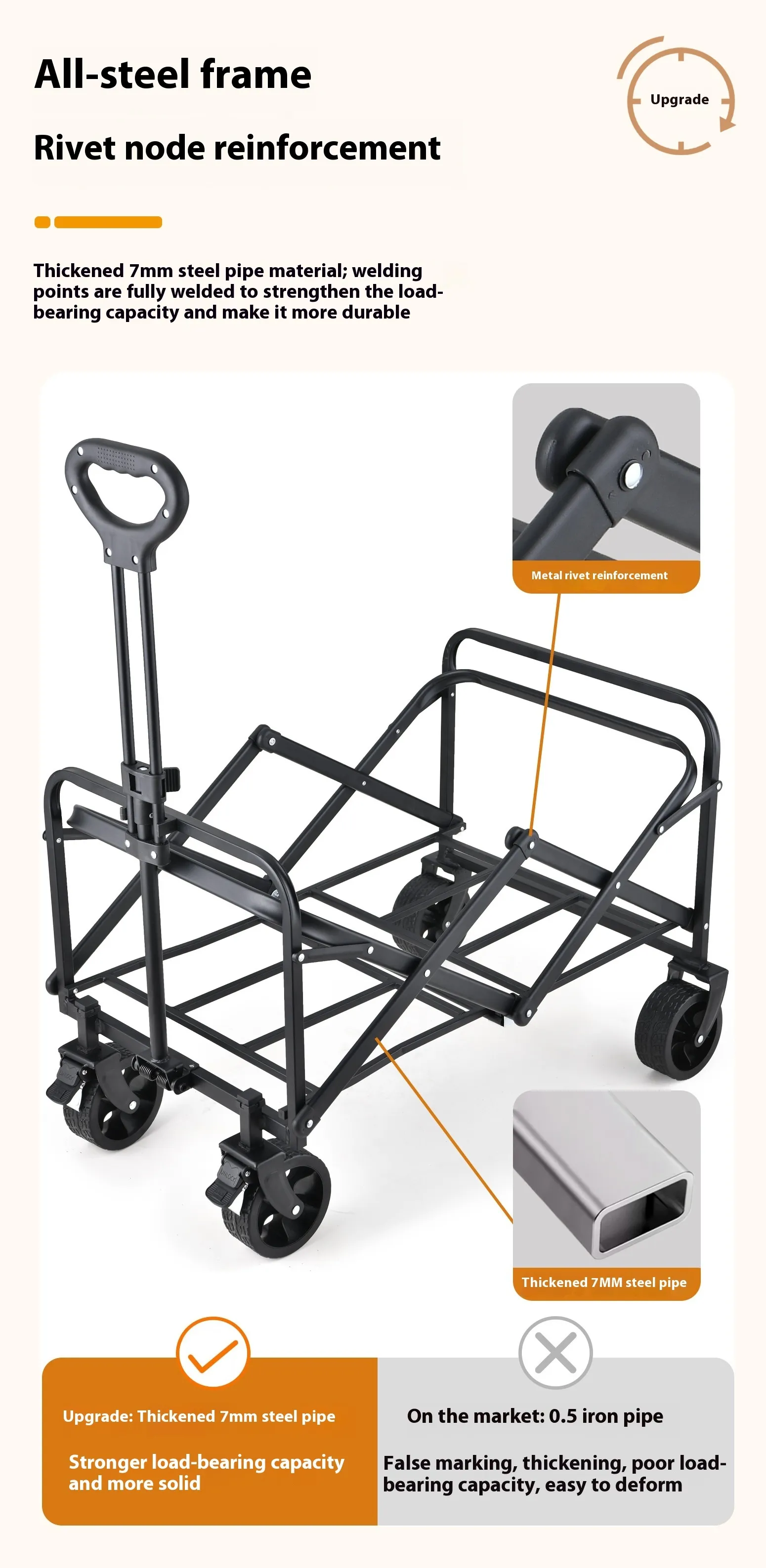 Easy to Maneuver: The large, all-terrain wheels make it simple to push or pull the trolley through sand, gravel, or grass,