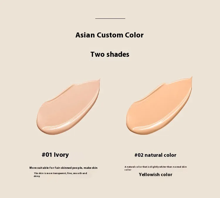 Color classification: #01 Milky White liquid foundation,#02 natural color liquid foundation