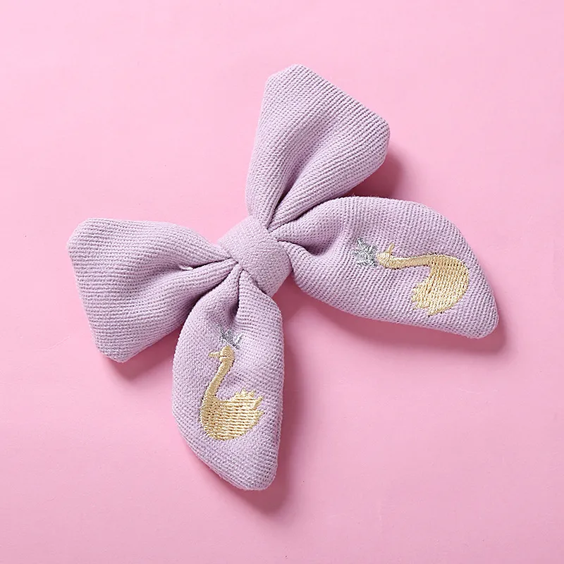 Beautifully Embroidered Cotton Children's Bow Hair Clip