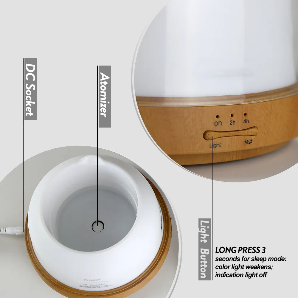 - Ultrasonic technology: Quiet and effective mist diffusion.