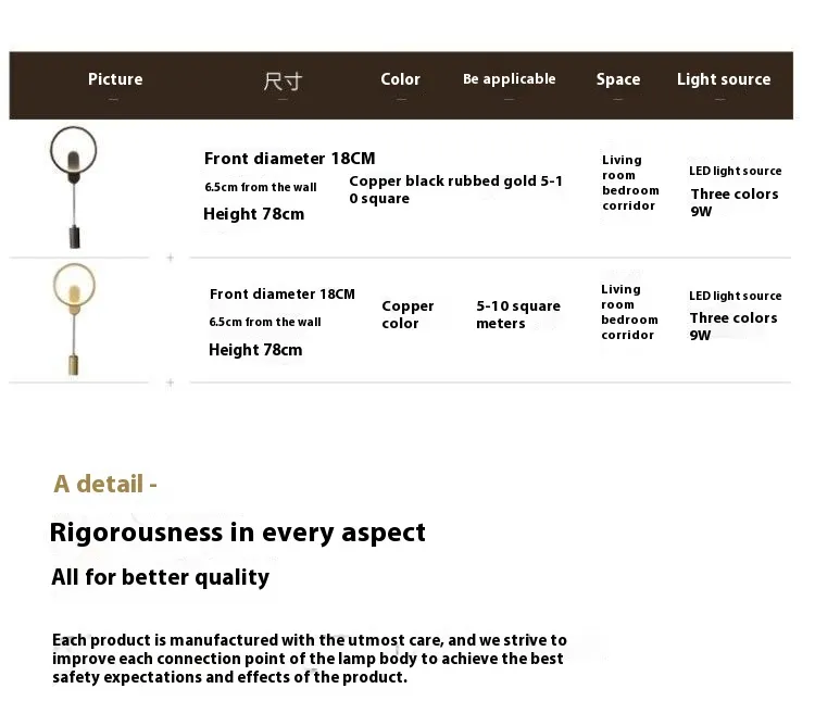 Light color: all copper wall lamp-black polished gold [tricolour light], all copper wall lamp-copper inner color [tricolour light], all
