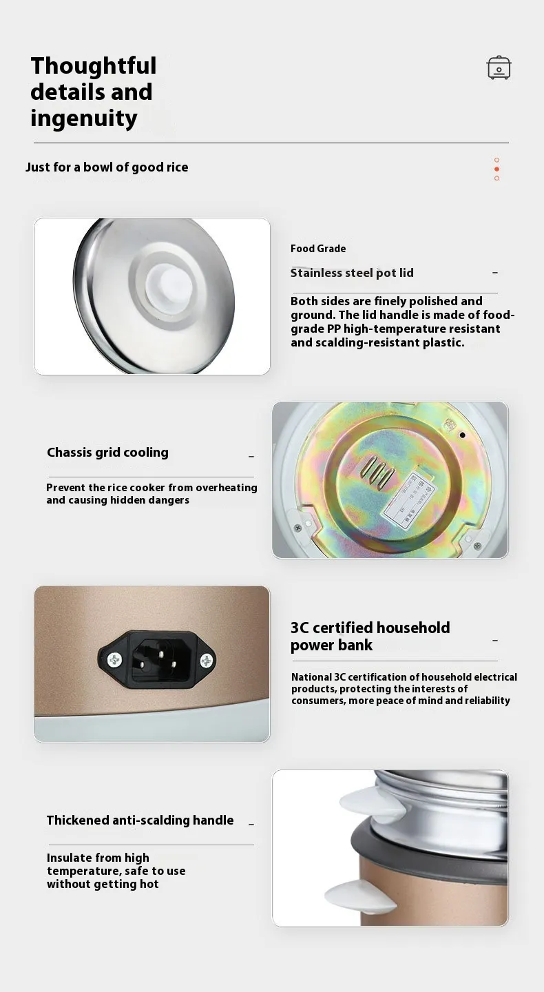 Non‑Stick Inner Pot: Easy to clean and maintain, preventing rice from sticking and making post‑meal cleanup effortless.