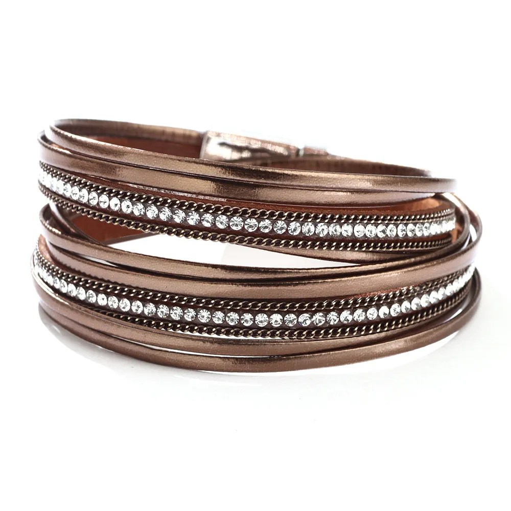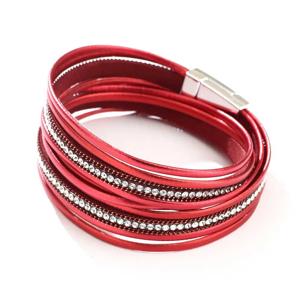 Best-selling Button In Europe And America Diamond Bracelet PU Leather Colorful Rhinestone Fashion Bracelet Foreign Trade Hot Drilling Hot Sale Hand Jewelry Wholesale