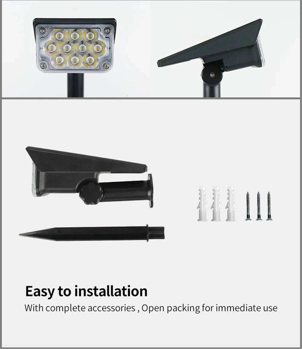Function: Light control, the solar panel charges the battery during the day and lights automatically at night.