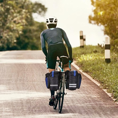 Bicycle Backpack Rear Rack Double Bag Waterproof Saddle MTB - Blue