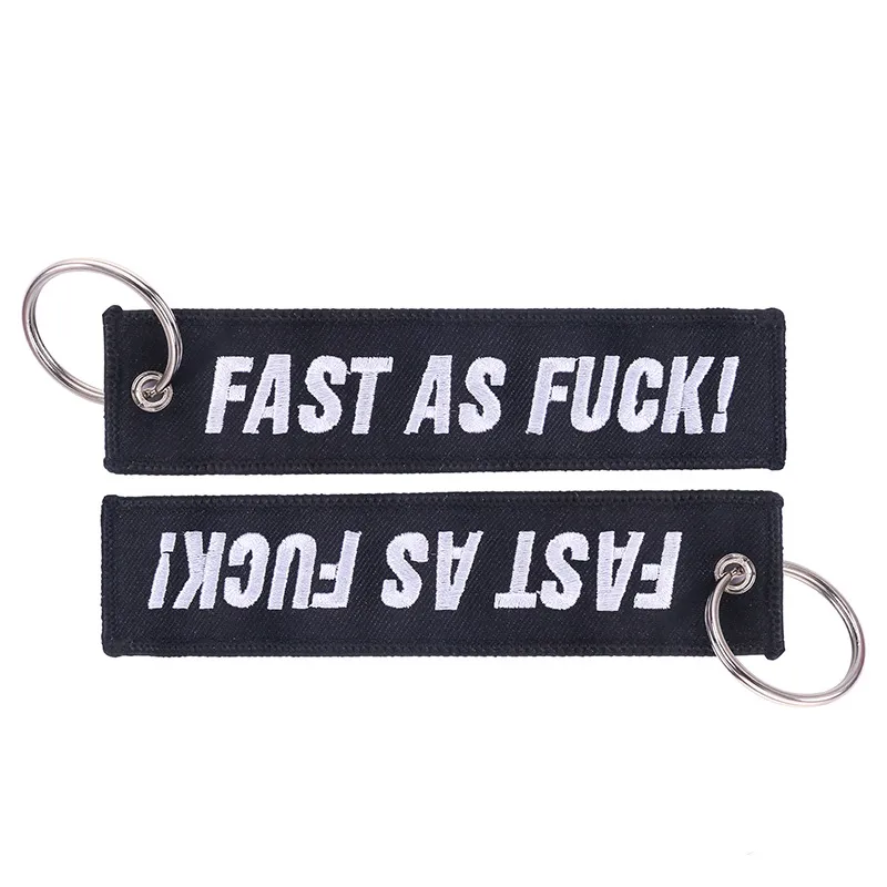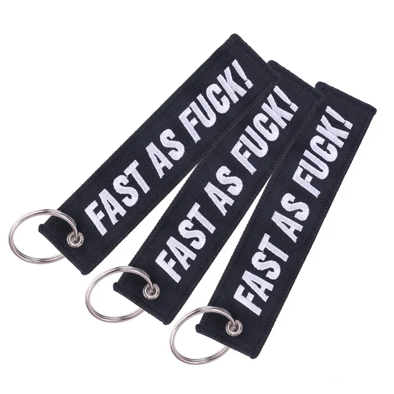 Bicycle Pendant White Embroidered Keychain On Black Background