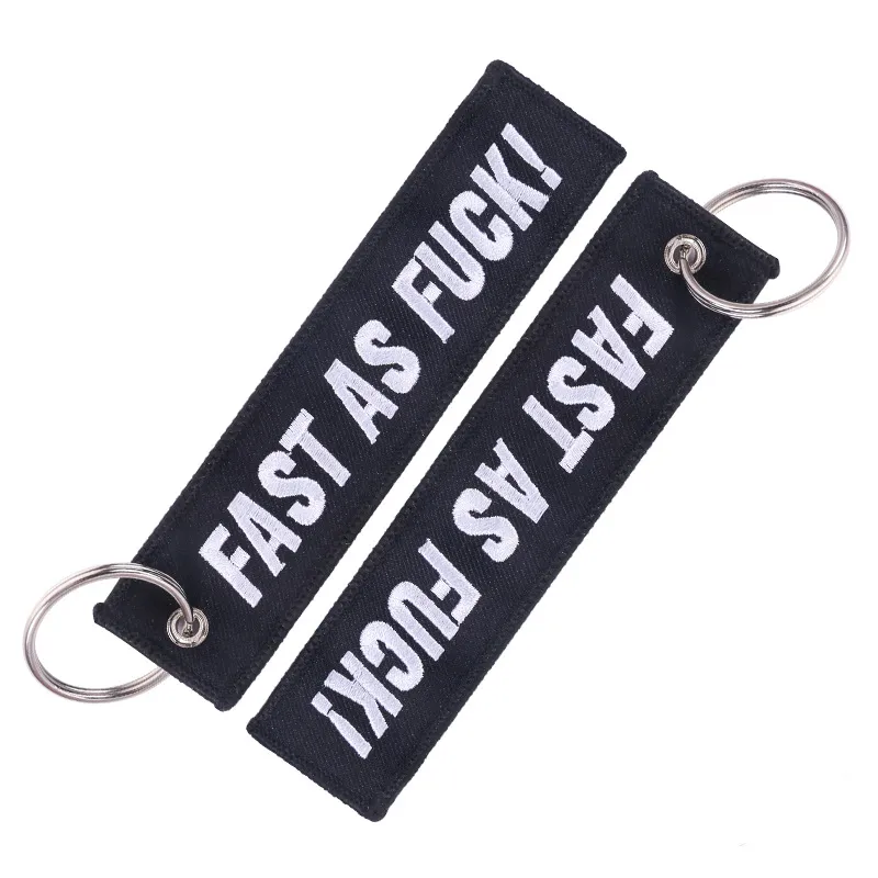 Bicycle Pendant White Embroidered Keychain On Black Background