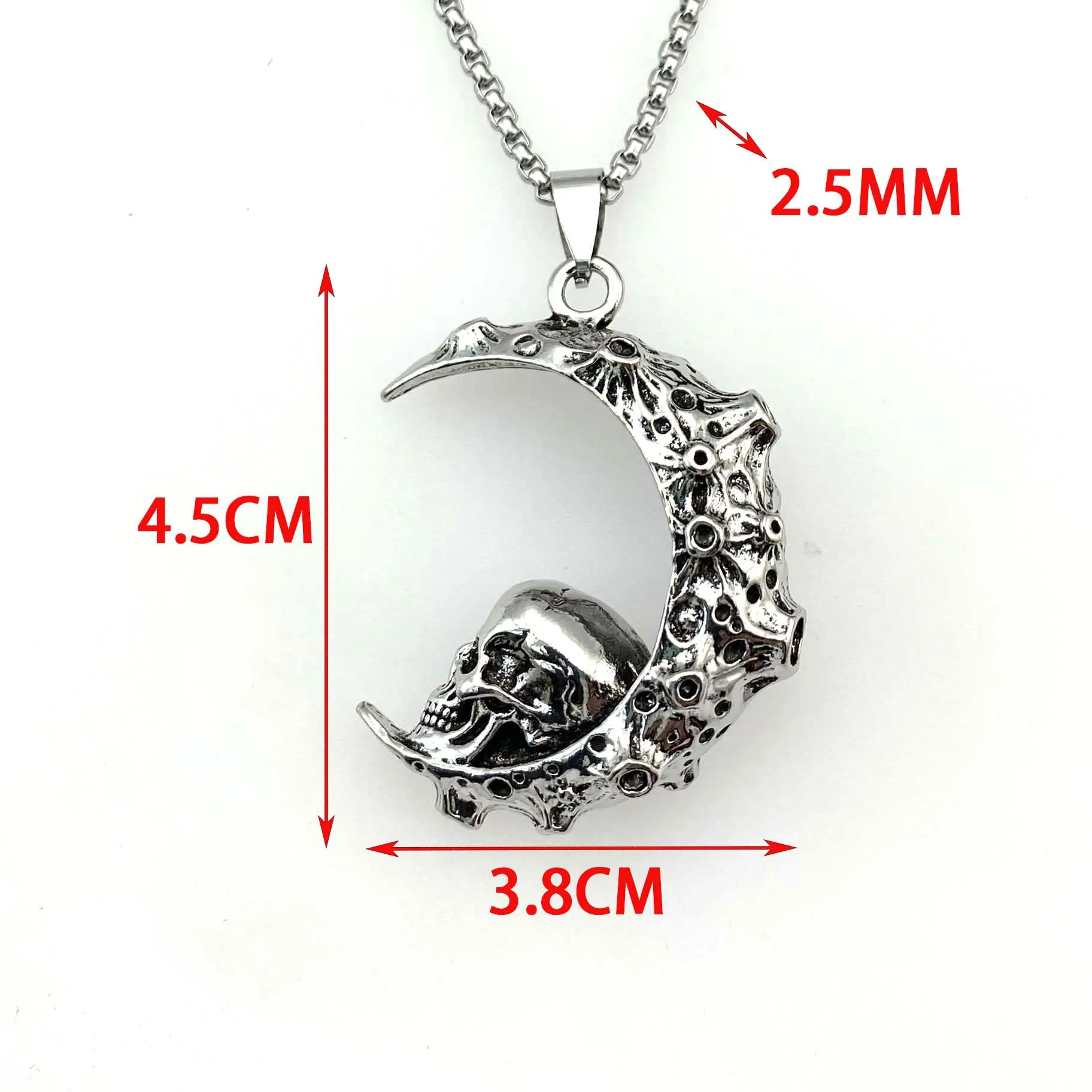 Big Stainless Steel 3D Moon Skull Pendant Biker Punk Necklace for Men - Jewelry with Free Shipping