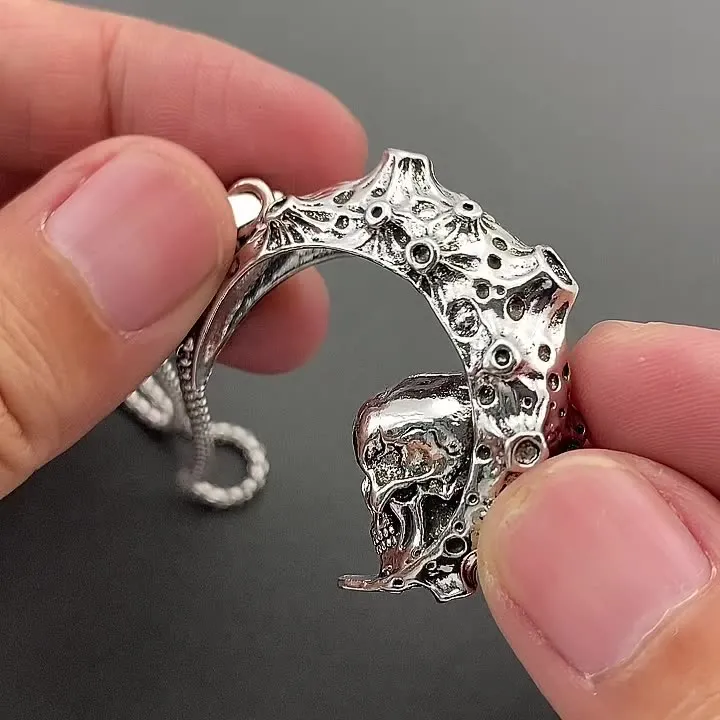 The 3D moon skull pendant is a bold fashion statement. Its striking design draws attention, representing strength, rebellion, and a fearless attitude. It’s the ideal choice for men who want to express their individuality and punk spirit through their accessories.