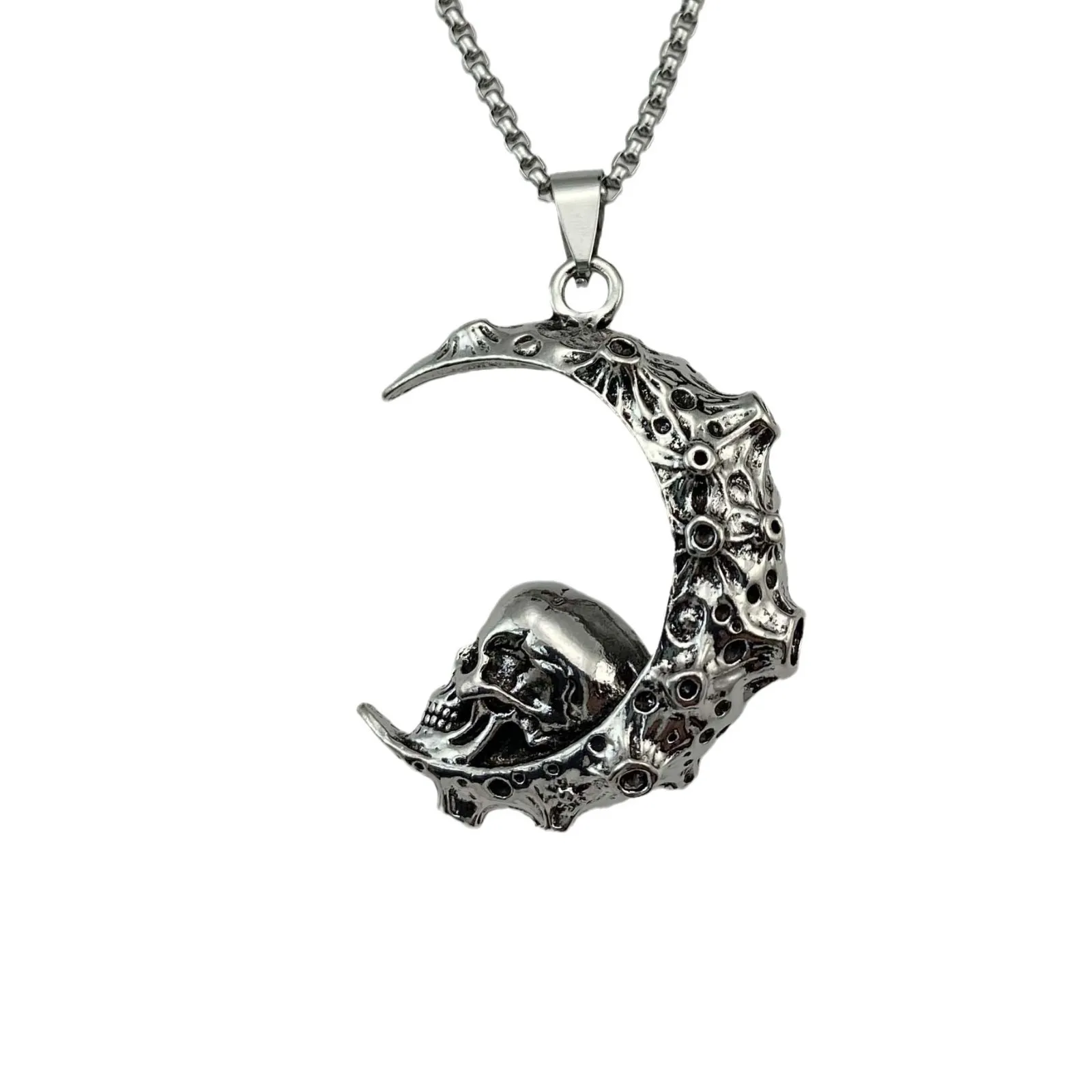 Why You Should Choose the Big Stainless Steel 3D Moon Skull Pendant Biker Punk Necklace