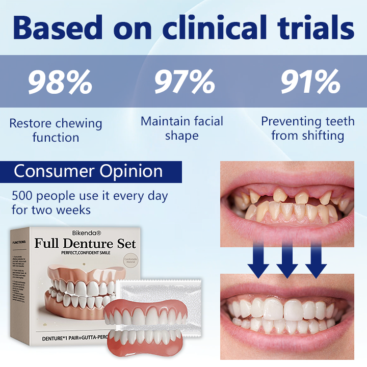 Regain your confidence and enjoy the benefits of a complete smile with the Bikenda® Advanced Full Denture Set — your trusted partner in