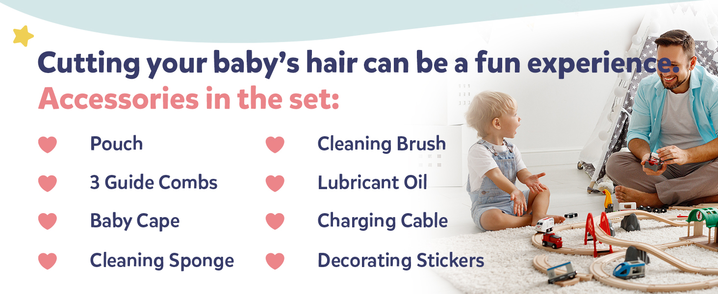 hair clipper provides a relaxed and peaceful hair-trimming session for the little one.