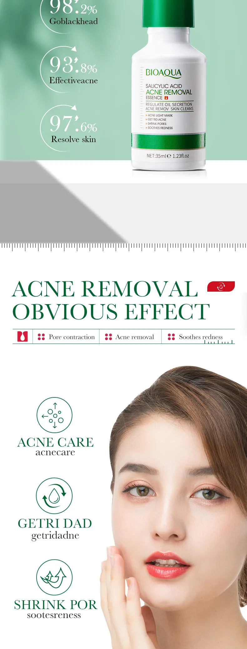 Bioaqua Acne Removal, Salicylic Acid Acne Essence, Acne Treatment, Blackhead Removal, Pore Shrinking, Smooth Skin, Acne Scar Treatment, Skin