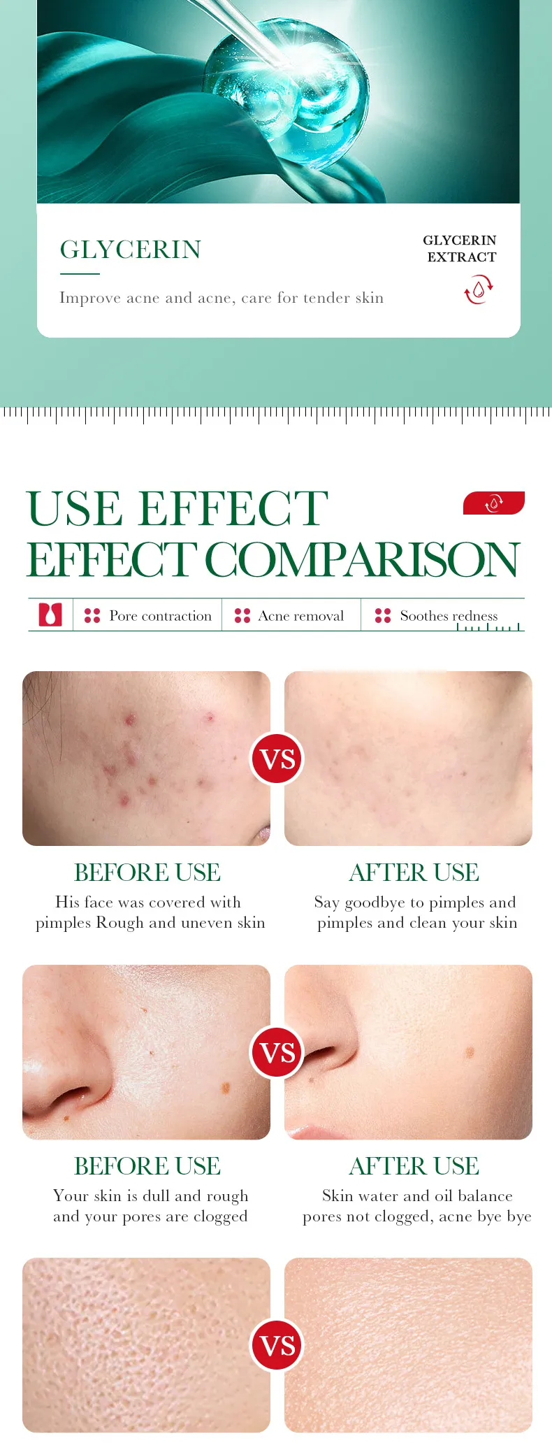 - Salicylic Acid Formula: Effectively removes acne and prevents new breakouts by regulating oil secretion.