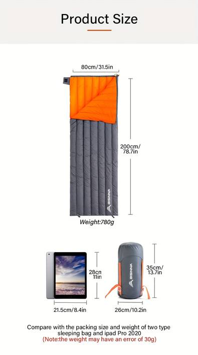 The BISINNA Ultralight Down Sleeping Bag offers 90% down insulation, a durable nylon exterior, and a rectangular design for superior comfort, warmth, and performance in cold conditions. Perfect for camping, hiking, and outdoor enthusiasts in NZ, it keeps you warm and cozy while being easy to carry and pack.