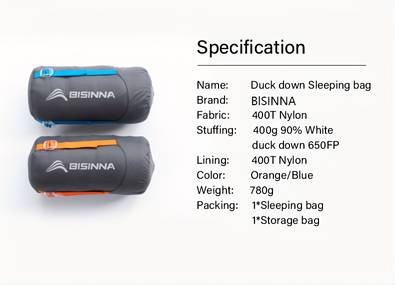 Description – BISINNA 90% Down Ultralight Sleeping Bag