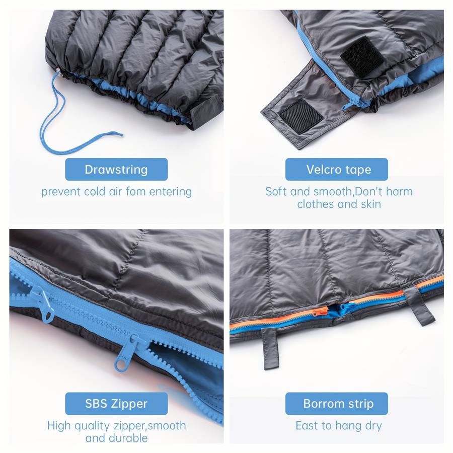 The BISINNA Ultralight Down Sleeping Bag is designed for outdoor enthusiasts, campers, and hikers looking for a compact, warm, and high-performance sleeping bag. Filled with 90% down and 10% duck down, it provides exceptional warmth and insulation in cold conditions while remaining lightweight for easy packing and transport.