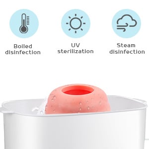 easy to clean it with water and dishwasher safe! For sterilization, you can simply use hot water.