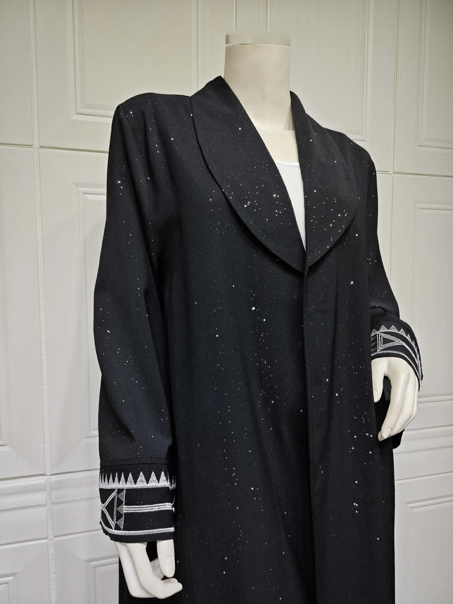 Detailed Embellishments: Many black abayas feature intricate embroidery, beadwork, or delicate lace at the sleeves,