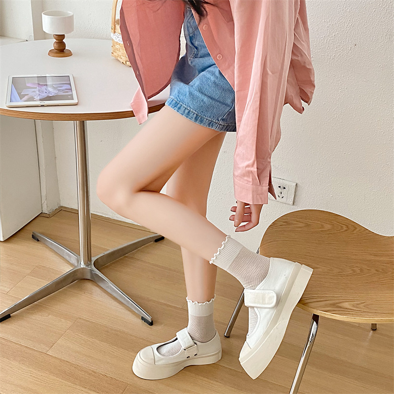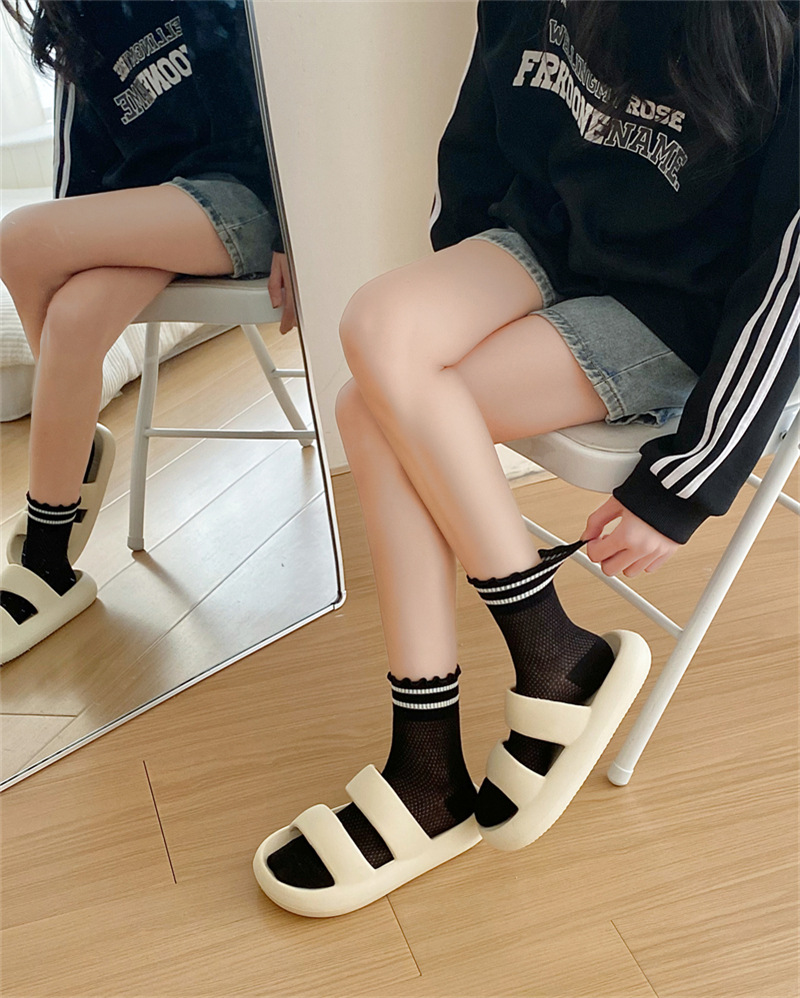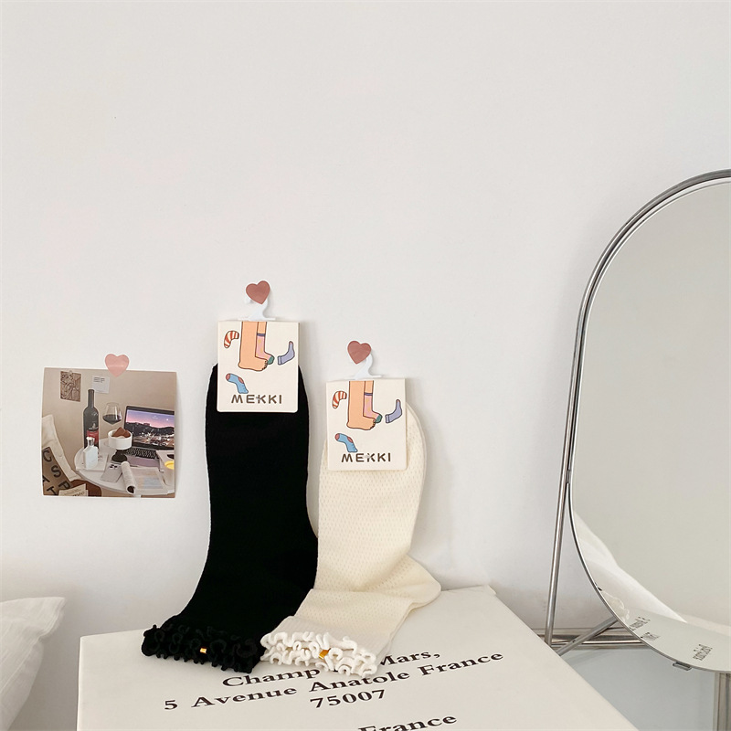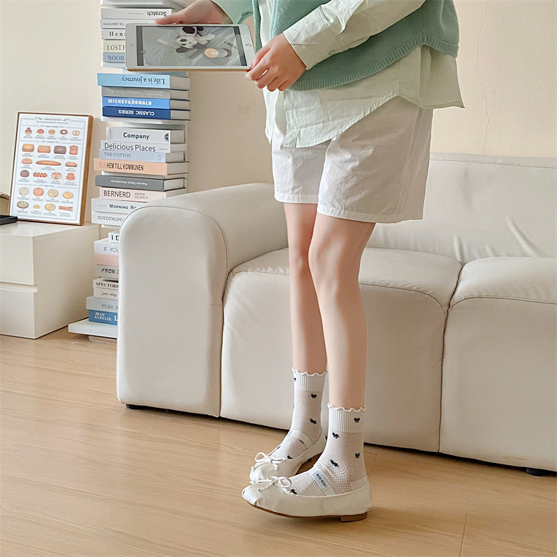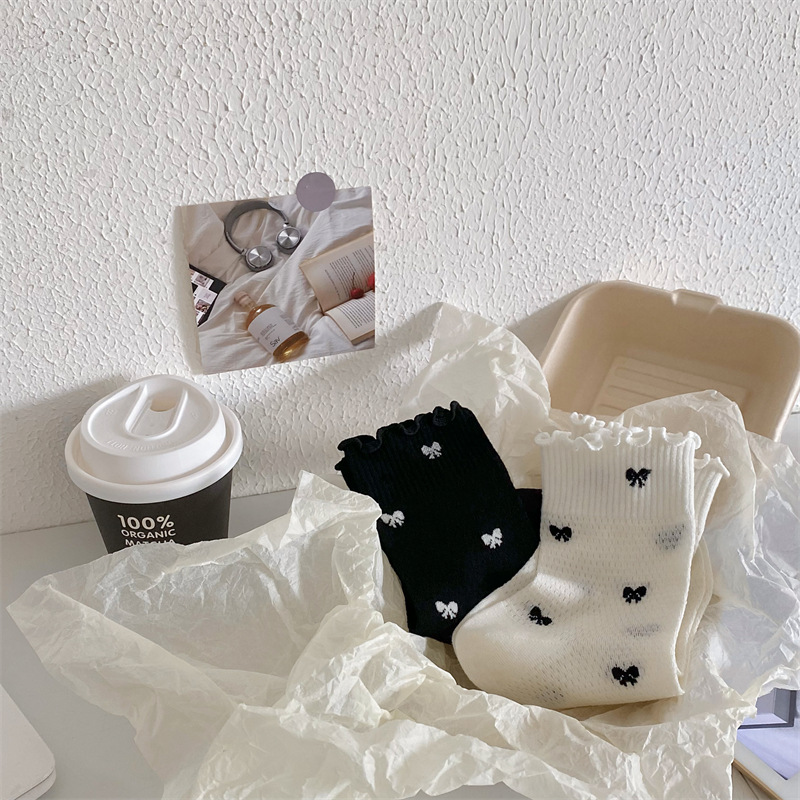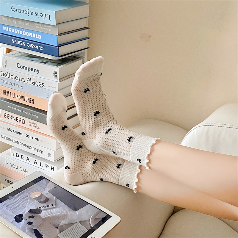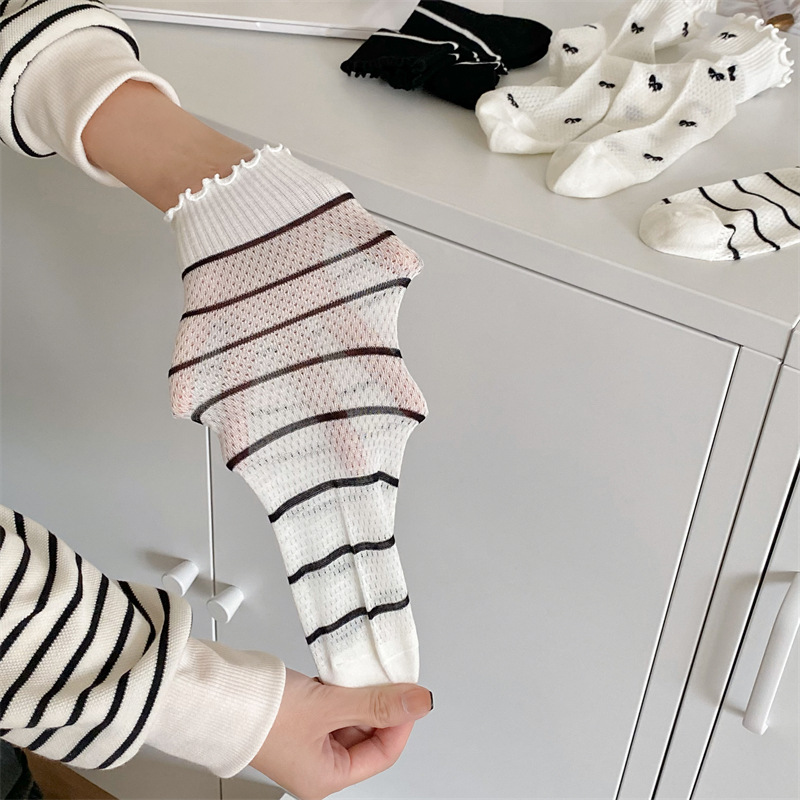 Black And White Openwork Breathable Women's Small Mid-calf Lace Women's Socks
