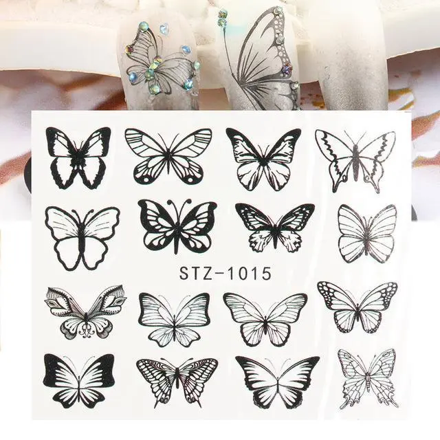 Black Butterfly Nail Decals and Stickers Flower Blue
