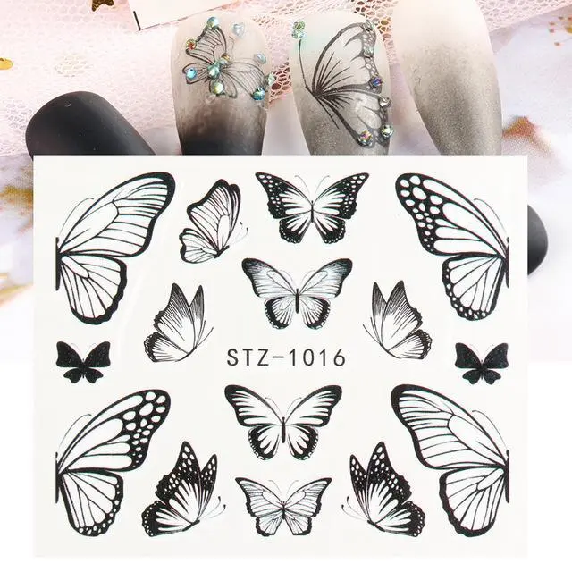 Black Butterfly Nail Decals and Stickers Flower Blue