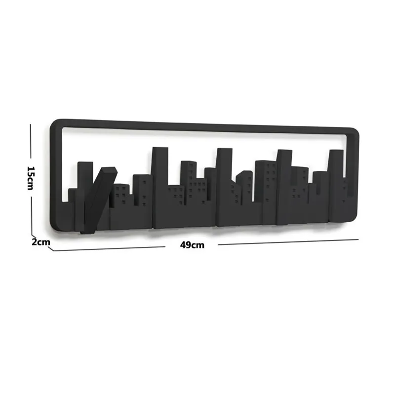 The cityscape design offers a bold, modern look that seamlessly fits into various decor styles, from contemporary to industrial. The sturdy metal construction ensures durability, while the multiple hooks provide ample hanging space for coats, scarves, bags, and more. Its wall-mounted design helps save space, making it ideal for smaller rooms or entryways where floor space is limited. The sleek black finish adds sophistication and makes it a versatile accessory that complements any color scheme or interior design.