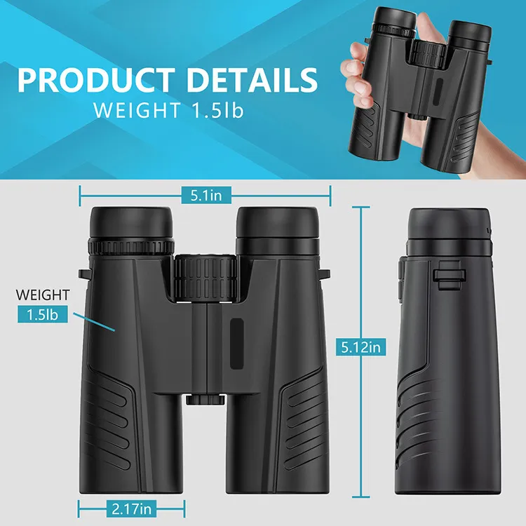 The 12x magnification and 42mm objective lens provide a clear and detailed view even from long distances, making them ideal for wildlife observation, hiking, and sports events.