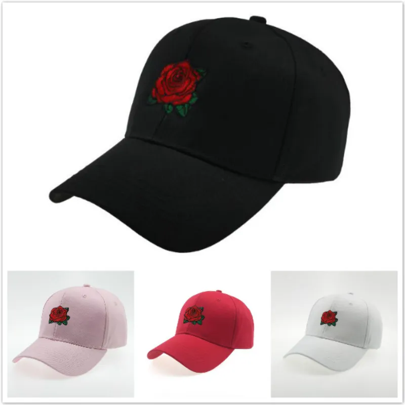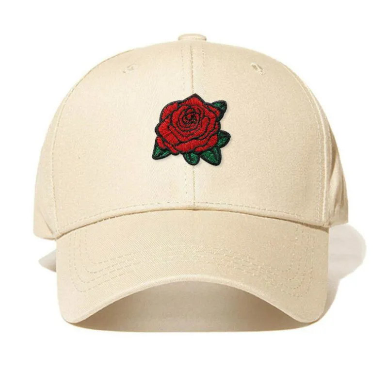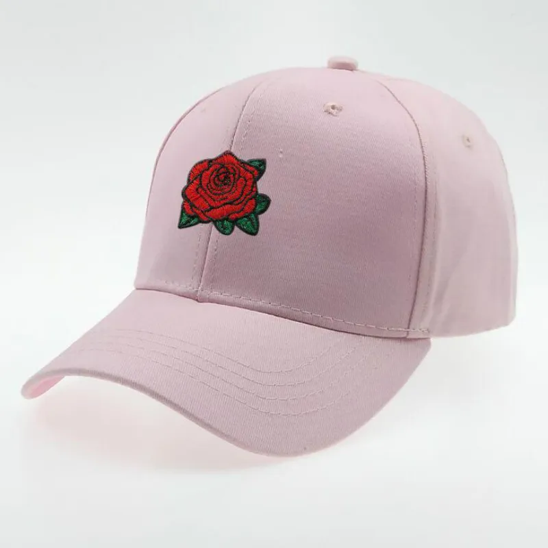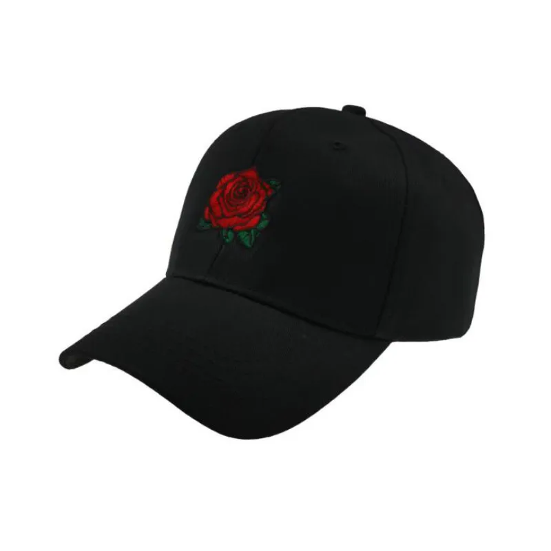 Black embroidered rose baseball cap
