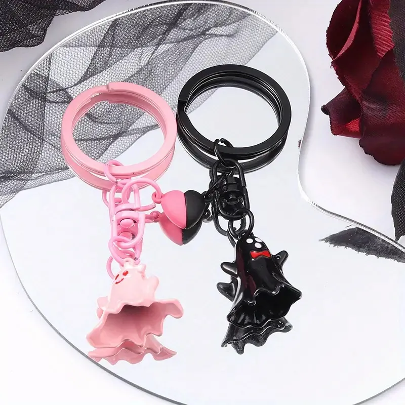 Black Ghost Cartoon Key Button Halloween Key Ring Bag Accessories