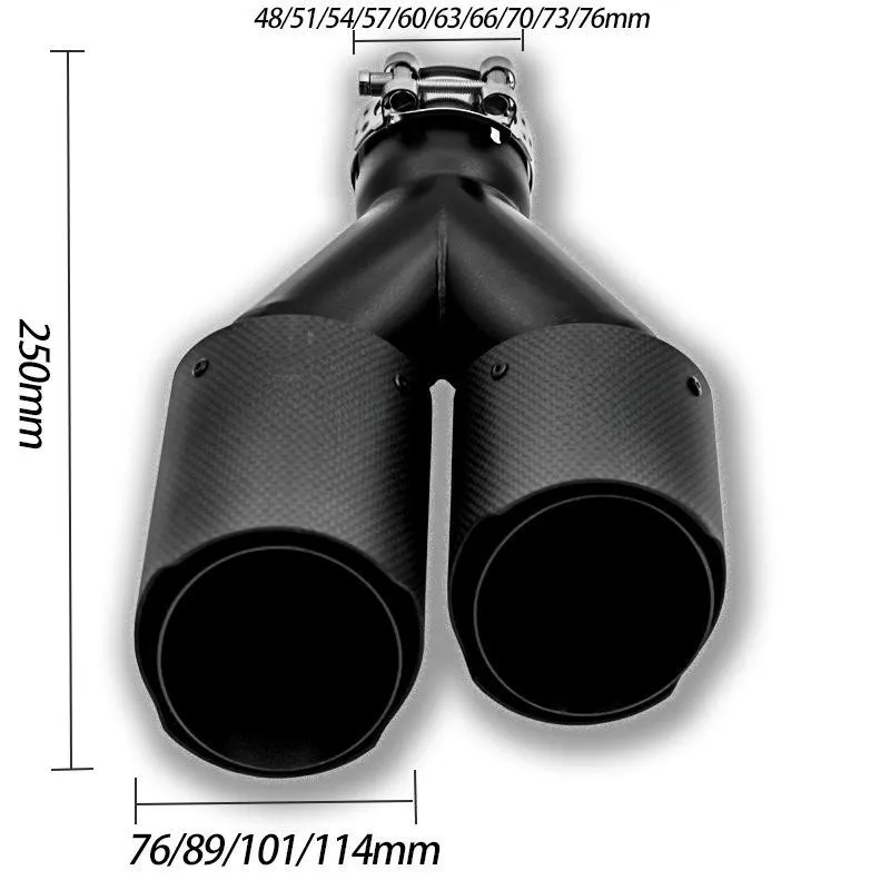 Upgrade your vehicle's exhaust system with this Black Dual Outlet Exhaust Pipe, designed for car modification enthusiasts who value both performance and style. Featuring a "one out of two" tail nozzle design, this silencer provides a sleek, modern look while enhancing exhaust efficiency. The double outlet configuration delivers improved airflow and reduces engine noise, making it an excellent choice for those looking to upgrade their car’s performance and aesthetic appeal. Crafted from durable materials, this exhaust pipe is built to withstand high temperatures and long-term use, ensuring a reliable and stylish addition to your vehicle.