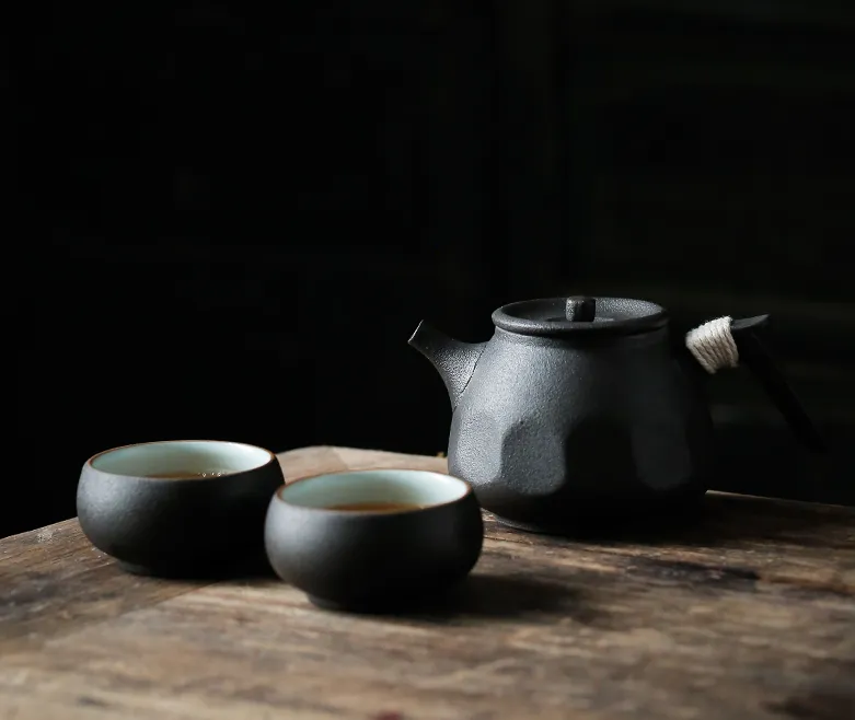 Black pottery tea set