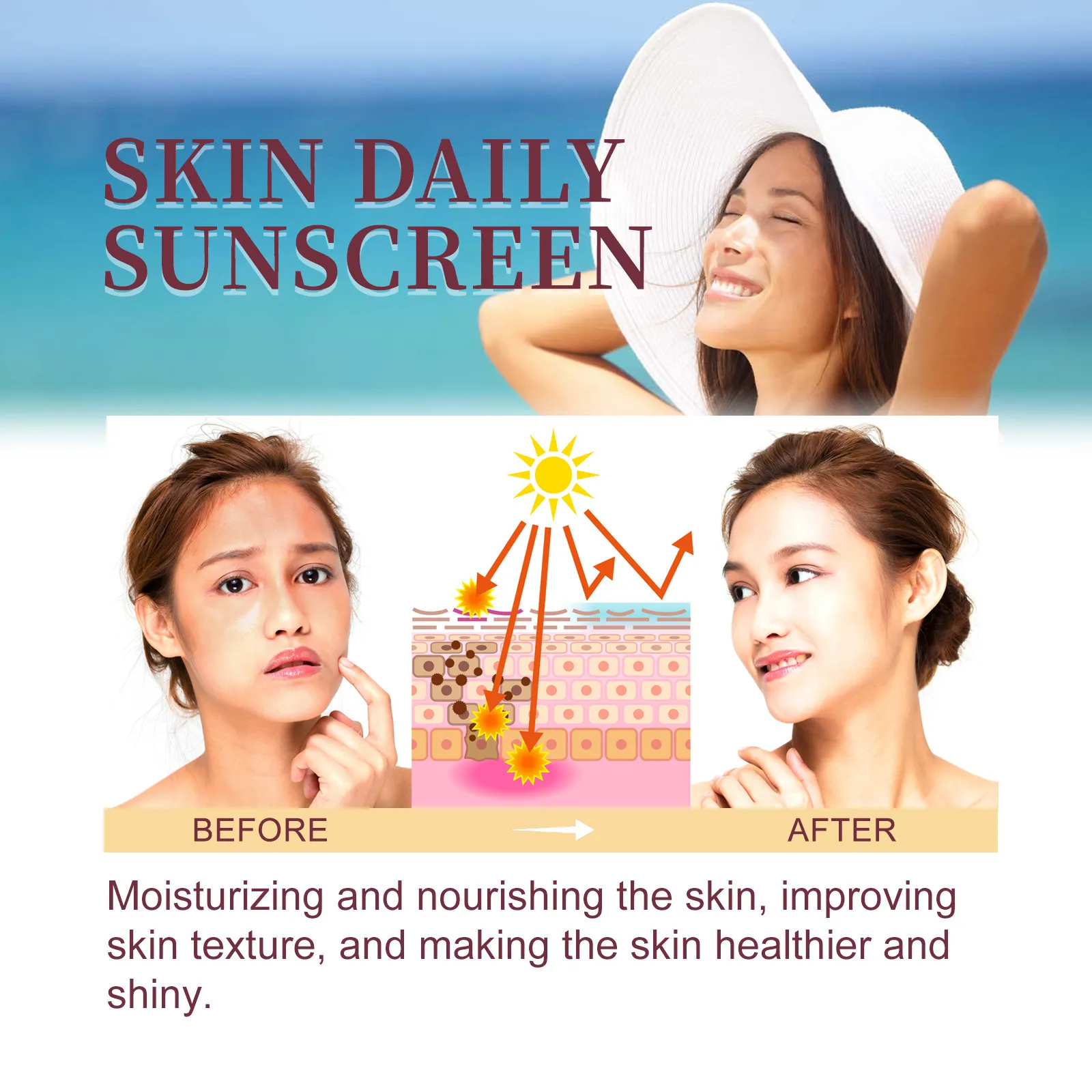 - Provides broad-spectrum UV protection, preventing sun damage and premature aging.