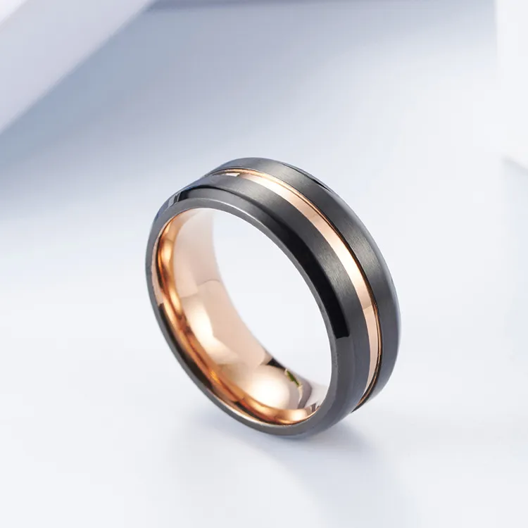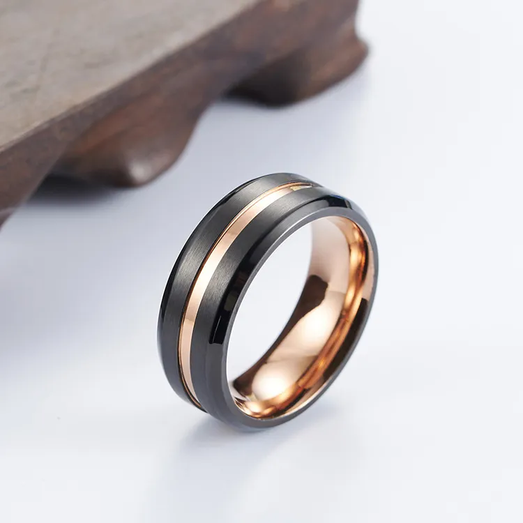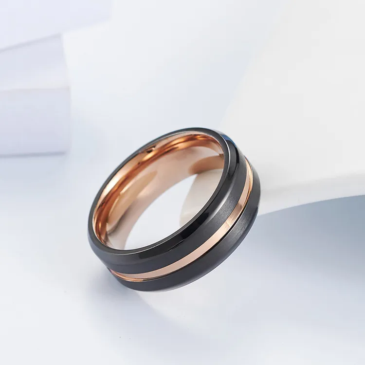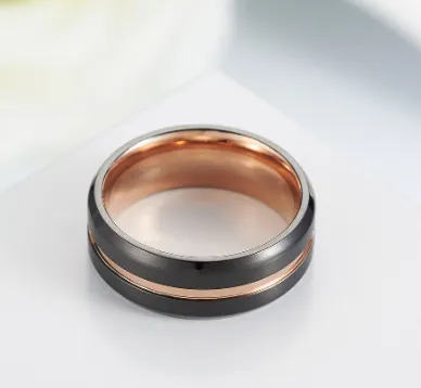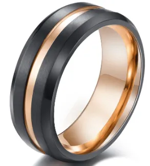 The black and rose gold combination creates a striking contrast, making this ring a standout accessory for both men and women. Its modern design suits a variety of styles, from casual to formal.