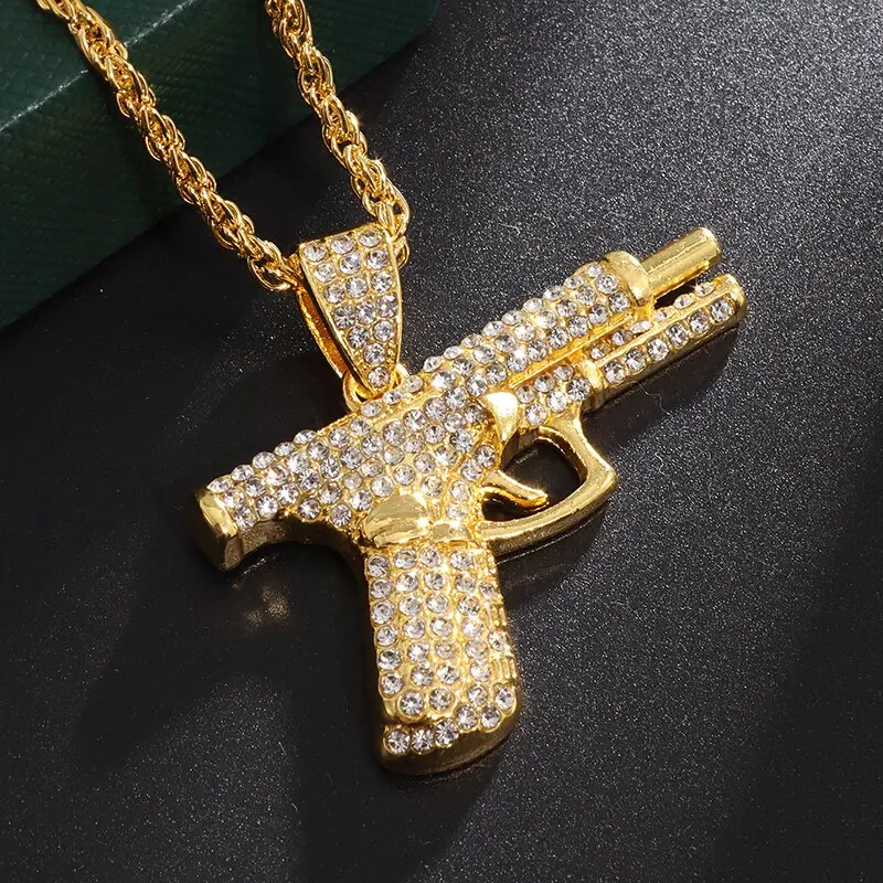 Bling Iced Out Pistol Pendant Submachine Gun Necklace Men