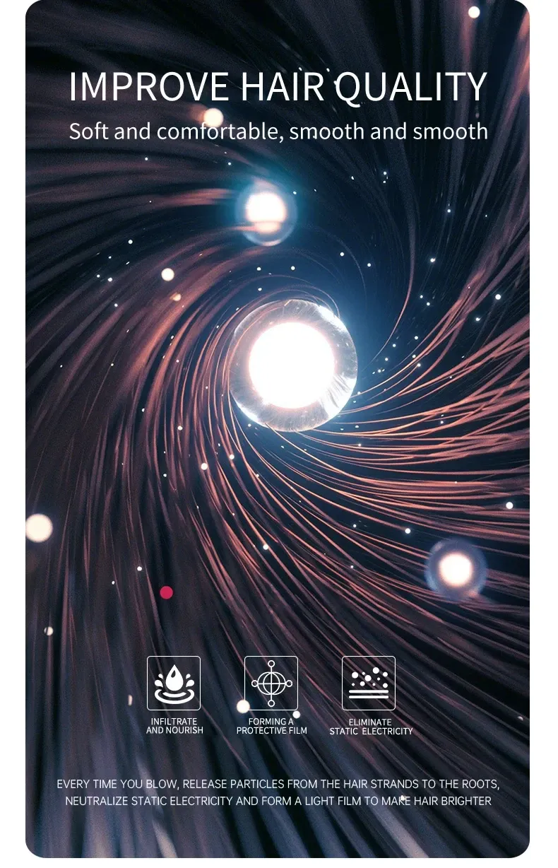 High speed electric turbine airflow: Experience the power of high-speed electric turbine airflow, aimed at quickly and efficiently drying hair.