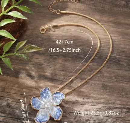 Blue Enamel Camellia Pendant Fashion