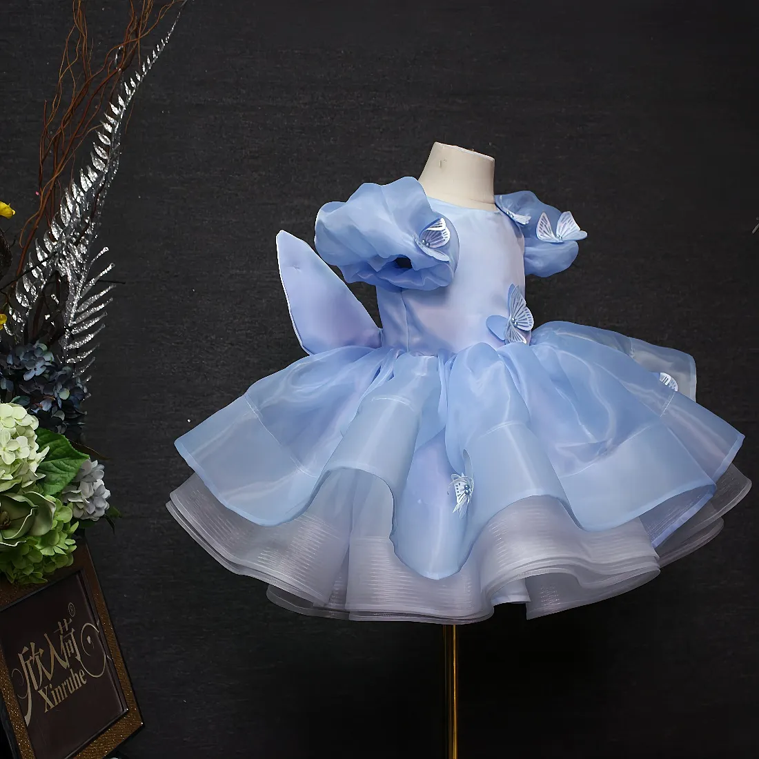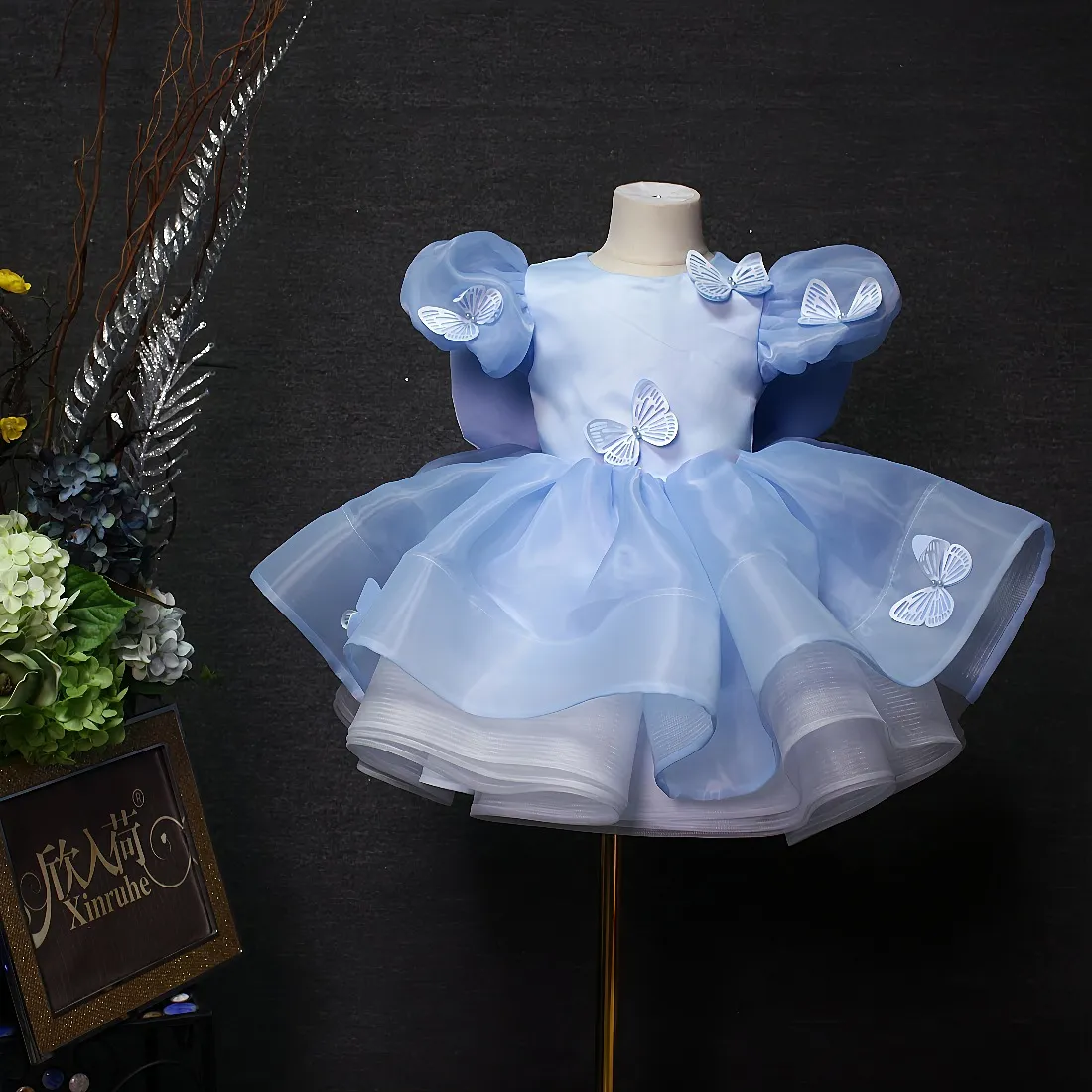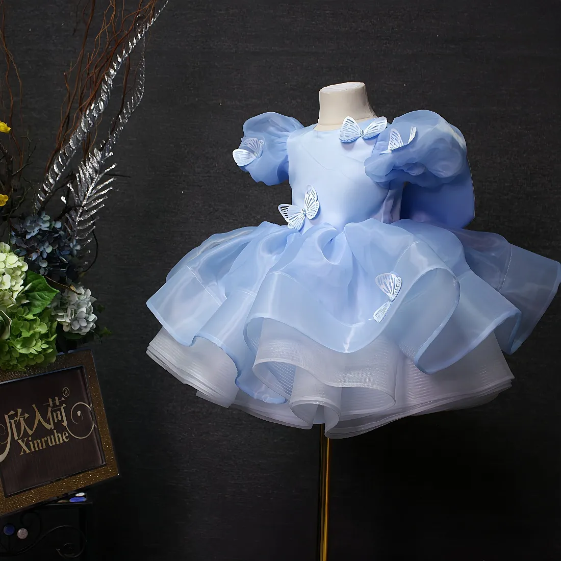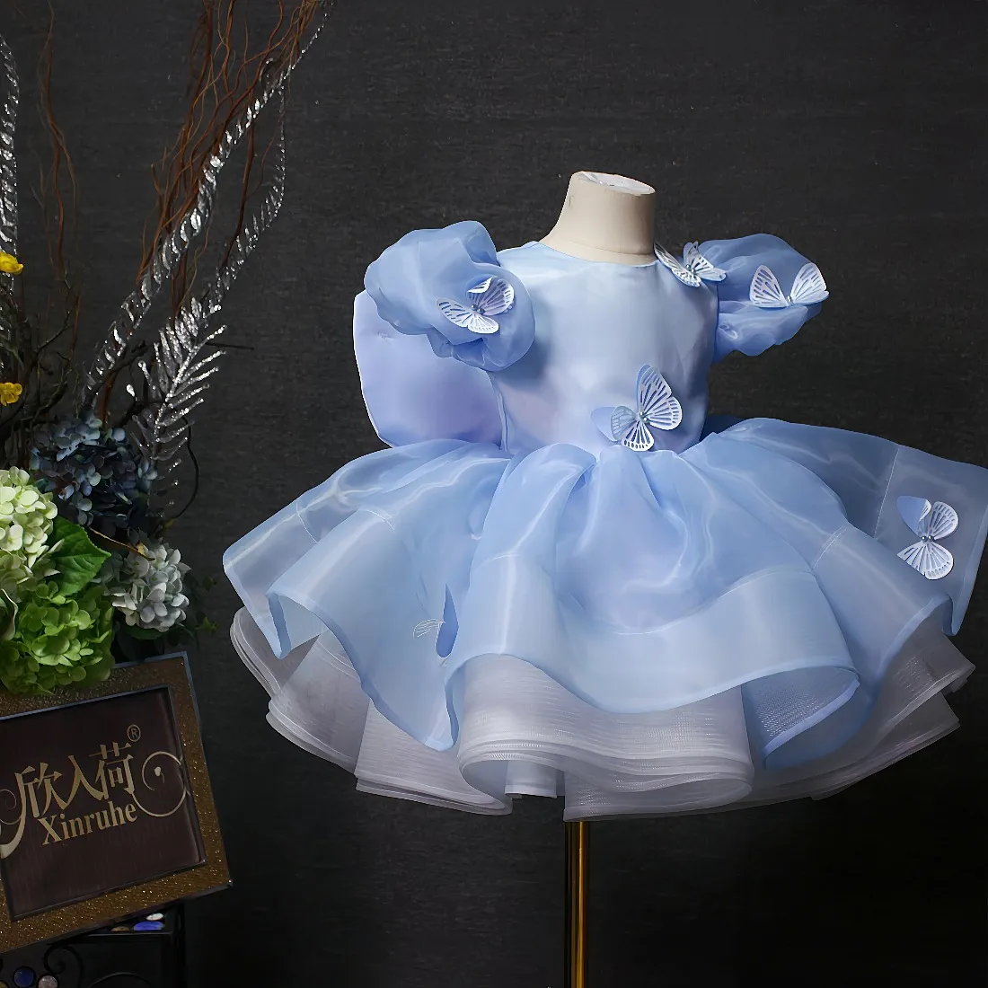 👗 Blue Short Butterfly Dress for Children – Elegant Bubble Skirt