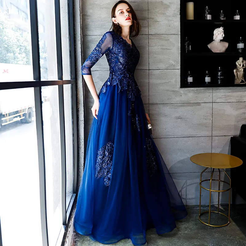 The dress features a flattering silhouette that enhances your natural shape, with a design that provides both style and comfort. The deep blue hue adds a touch of richness, while the velour fabric gives it a unique sheen that catches the light beautifully, making it perfect for evening wear. The dress is designed to be both versatile and timeless, with a modern cut that can be dressed up or down depending on the occasion.