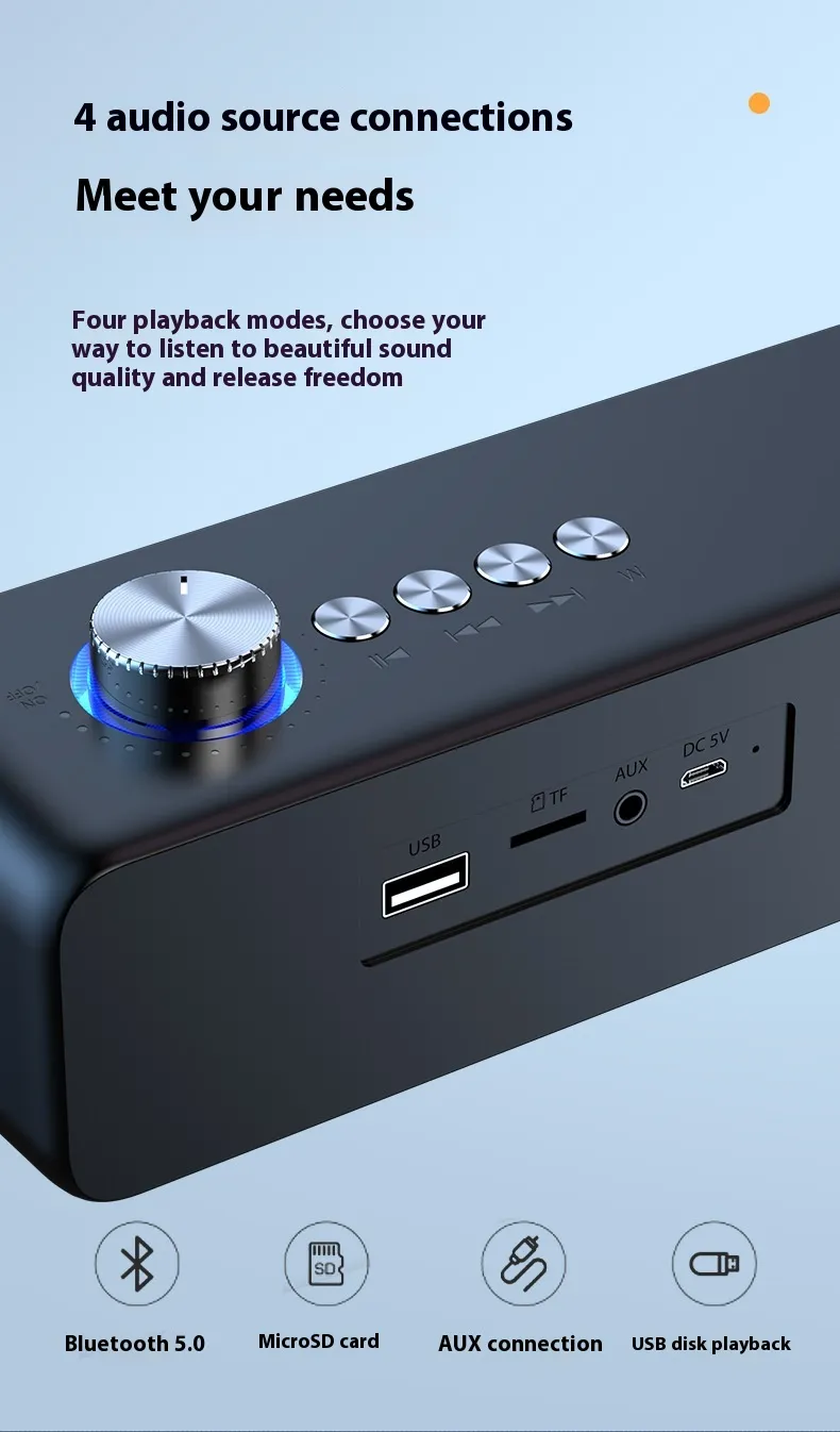 - AUX & USB Inputs: Connect non-Bluetooth devices via 3.5mm audio jack or USB port.