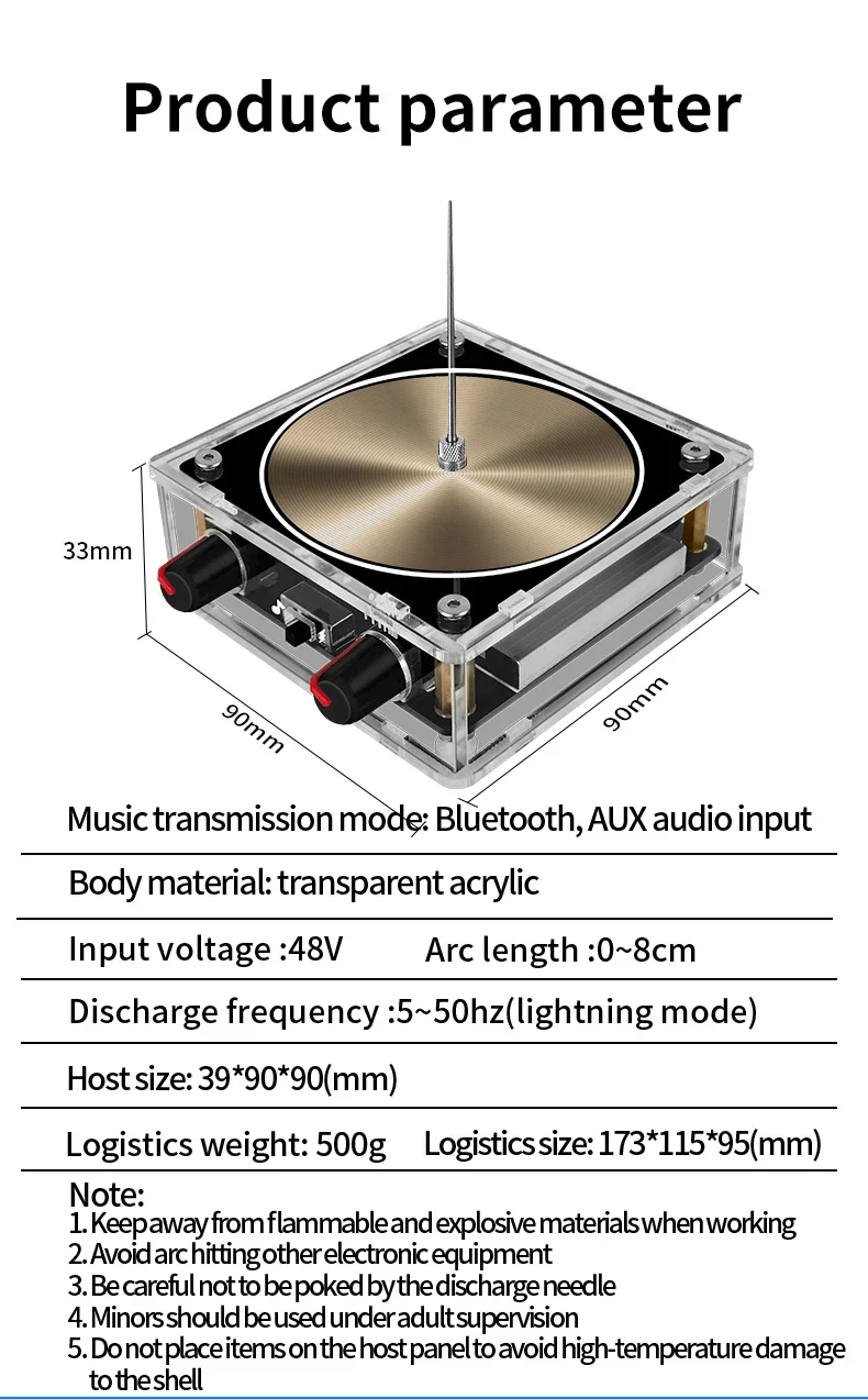 BETTER PERFORMANCE-----This music tesla has circuit protection design, will not damage the input device, can play music in better quality than arc plasma loudspeaker, only square wave music can be played.