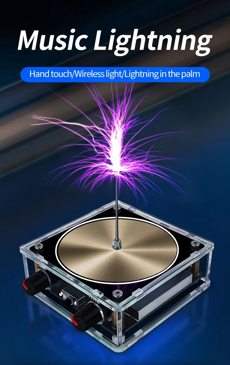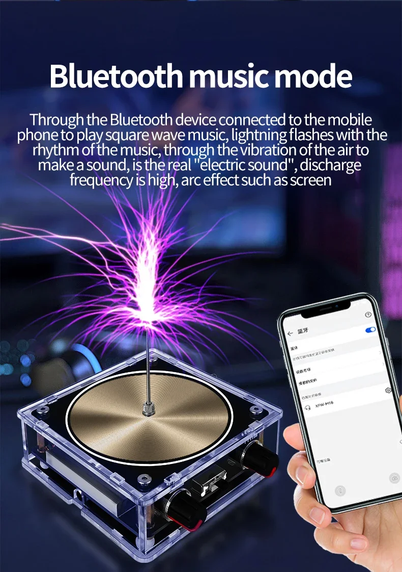 This Bluetooth music Tesla coil features an arc plasma loudspeaker and wireless transmission, producing touchable artificial lightning. It's an engaging educational experiment toy, perfect for demonstrating wireless transmission and the wonders of electricity.